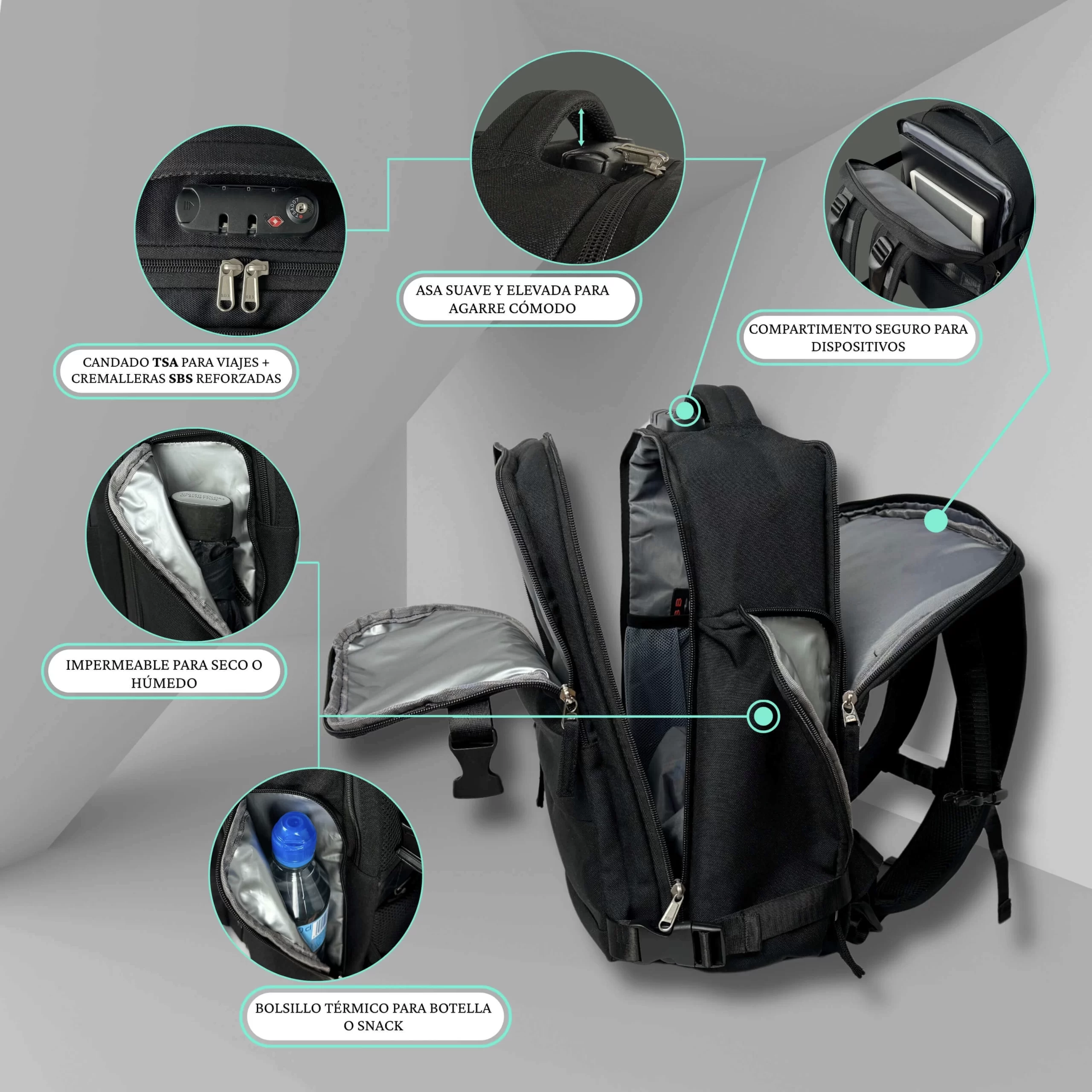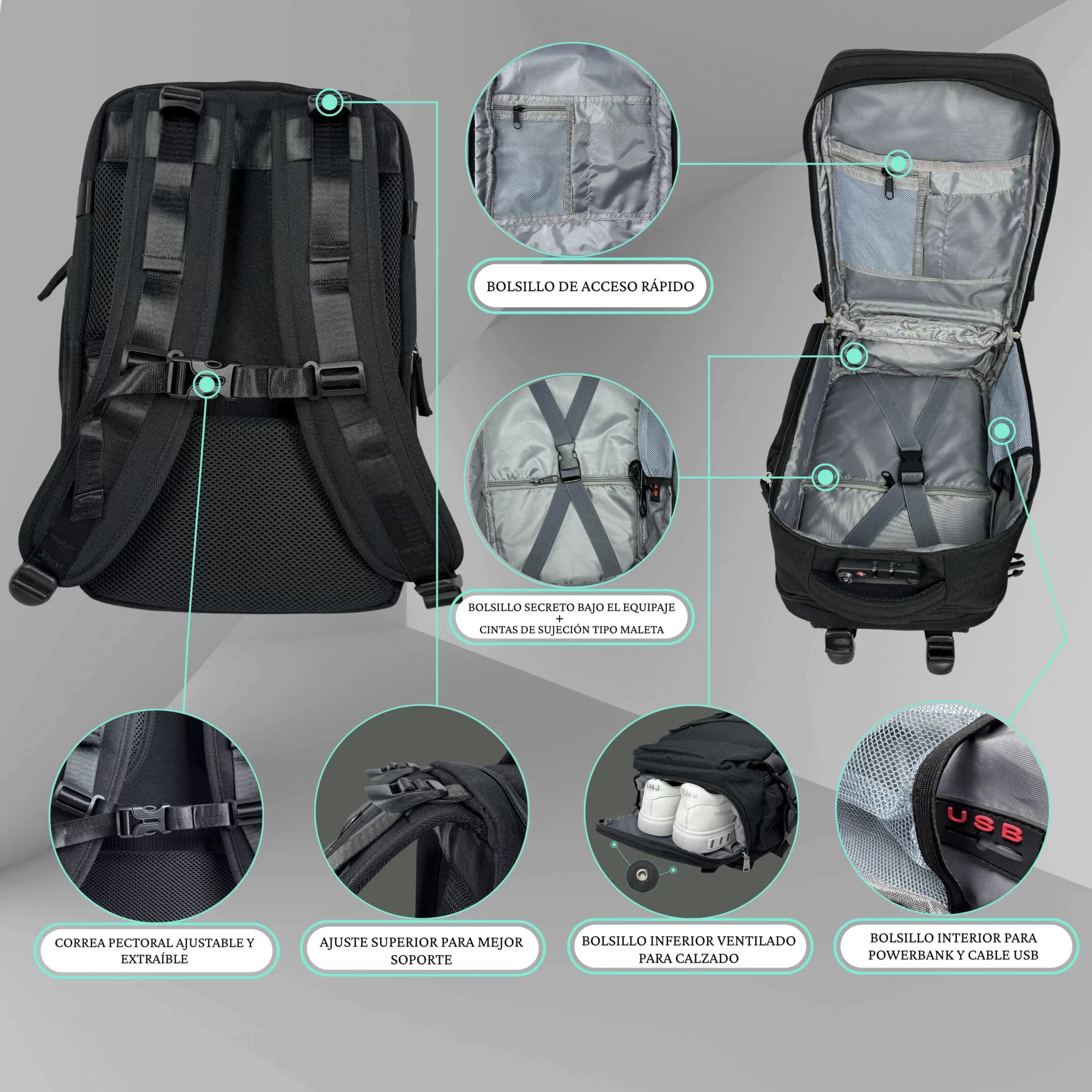 Naujos kartos rankinis bagažas kuprinė, atitinkanti griežčiausius oro linijų reikalavimus. Pagaminta iš vandeniui atsparaus Oxford 900D audinio, su TSA spynelė ir patvariais SBS užtrauktukais. Patogi ortopedinė nugarėlė ir modernus dizainas užtikrina komfortą tiek kelionėse, tiek kasdien naudojant.